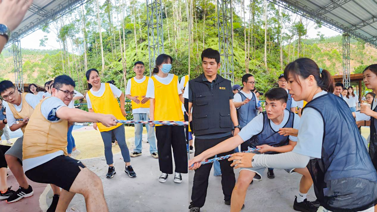 而后的环节丰富多彩,激情99秒、通天塔、拔河比赛、生命动力圈。好玩、新颖、开心,还有一丝劳累!通过丰富多彩的游戏,增加了各组成员之间的协作能力和一致性,大家纷纷迸发出更强的战斗力和集体意识。在自由欢乐的氛围中,每个人都为自己临时组成的队伍贡献出自己最大的努力。拔河是一项极具魅力的对抗性运动项目,各组队员通过同心同力、分工明确的运动形式,在紧张激烈的竞技过程中,感悟团队精神的真谛。